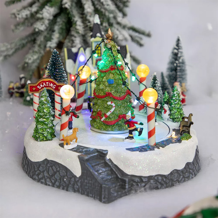 Χριστουγεννιάτικη Σκηνή Παγοδρομίου με Δέντρο LED Κίνηση και Μουσική