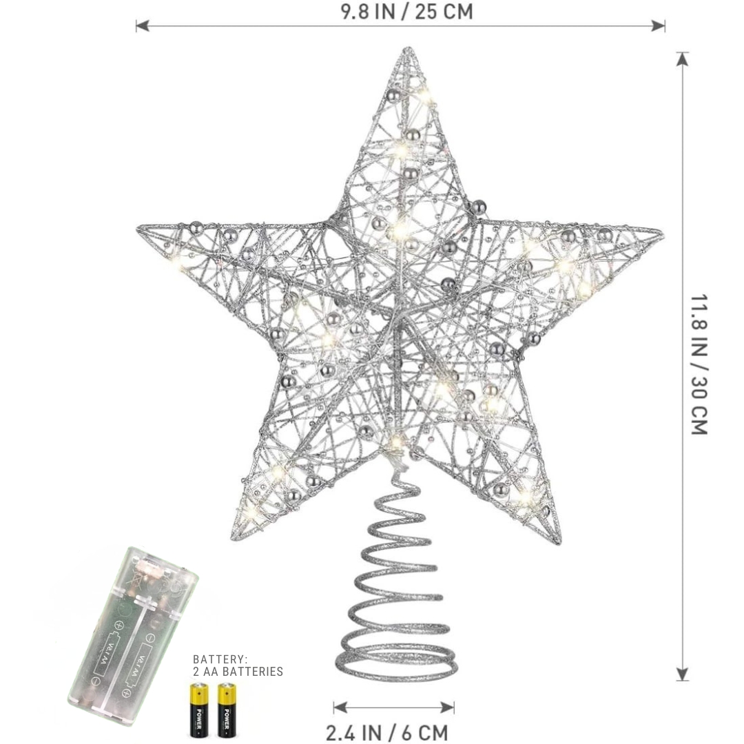 Με διαστάσεις 30x25 cm και σταθερή σπειροειδή βάση, το αστέρι προσαρμόζεται εύκολα στην κορυφή του δέντρου, χαρίζοντας σταθερότητα και κομψό φινίρισμα.