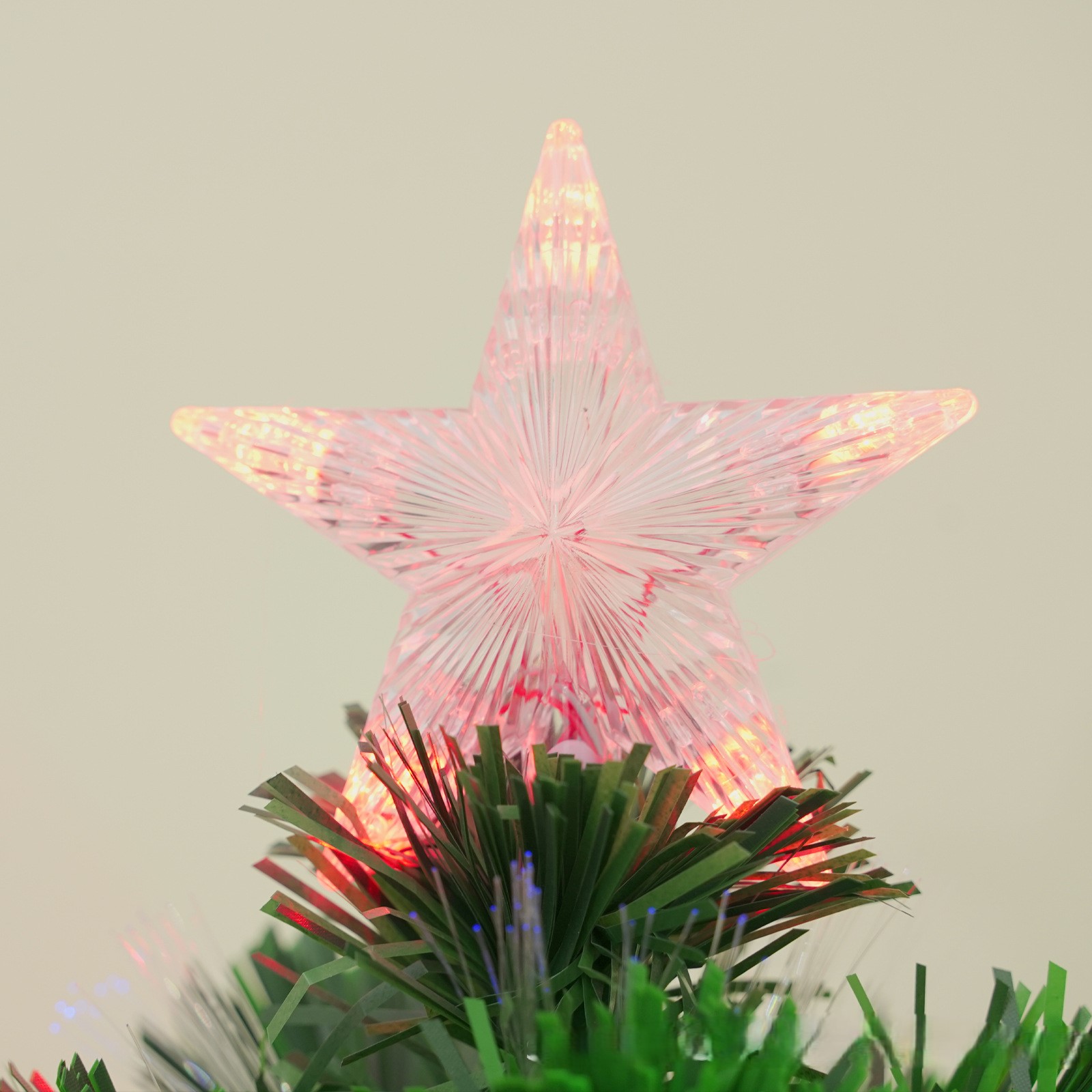 Οι οπτικές ίνες και τα πολύχρωμα LED φωτάκια δημιουργούν μοναδική ατμόσφαιρα, ενώ το φωτιζόμενο αστέρι στην κορυφή ολοκληρώνει ιδανικά την εορταστική εικόνα.