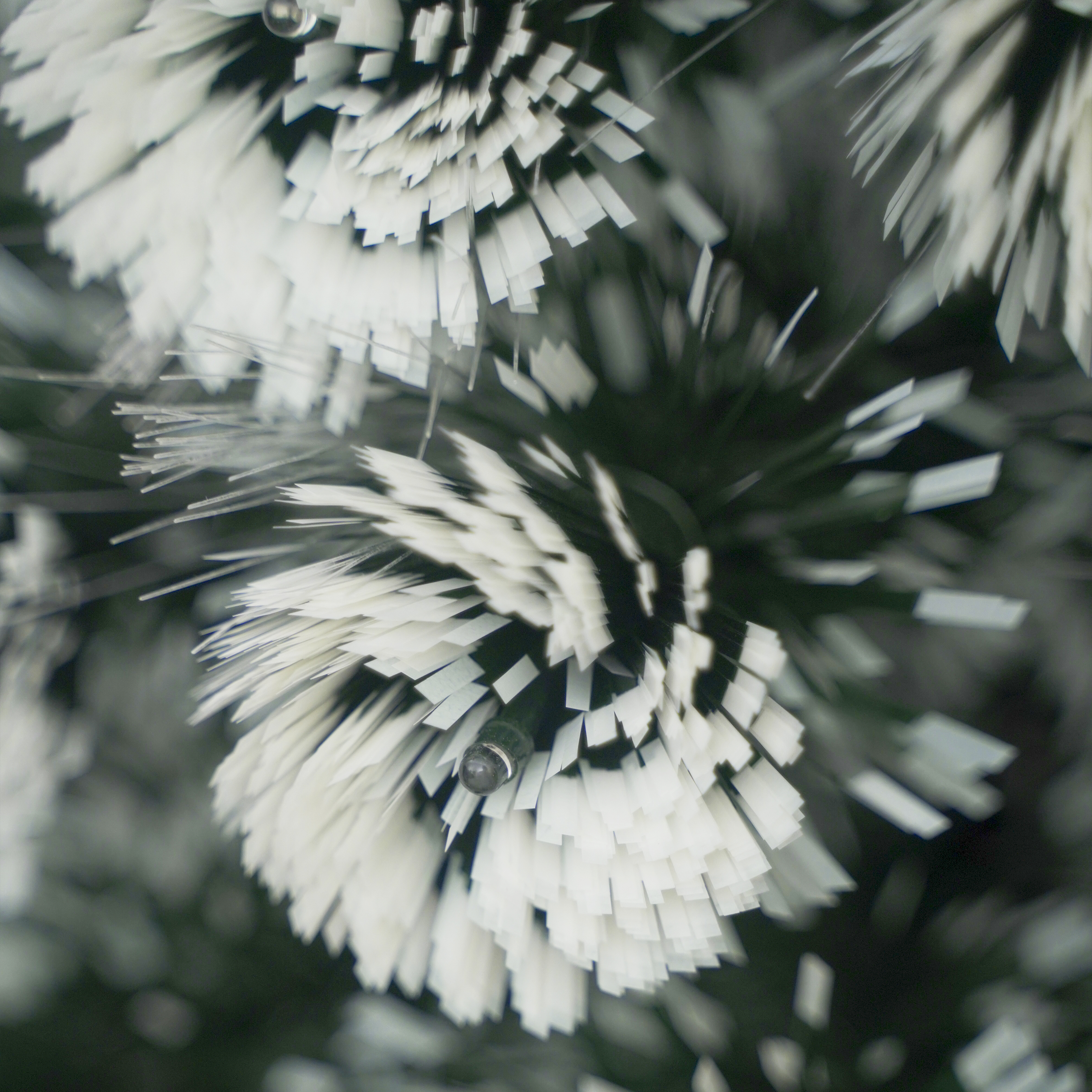 Οι ίνες οπτικής ίνας στα κλαδιά δημιουργούν ένα εντυπωσιακό παιχνίδι φωτός με πολύχρωμες λάμψεις, προσφέροντας ατμόσφαιρα μαγείας χωρίς την ανάγκη πρόσθετου στολισμού.