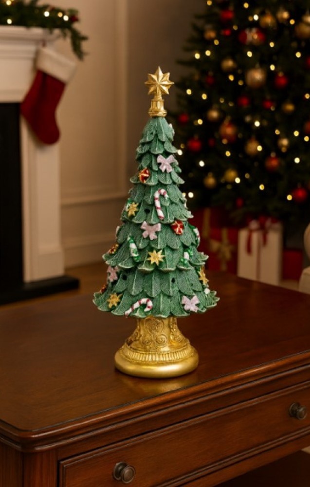 Κατασκευασμένο από ανθεκτική ρητίνη υψηλής ποιότητας, το δεντράκι διατηρεί τη λάμψη και τα χρώματά του αναλλοίωτα με τον χρόνο.