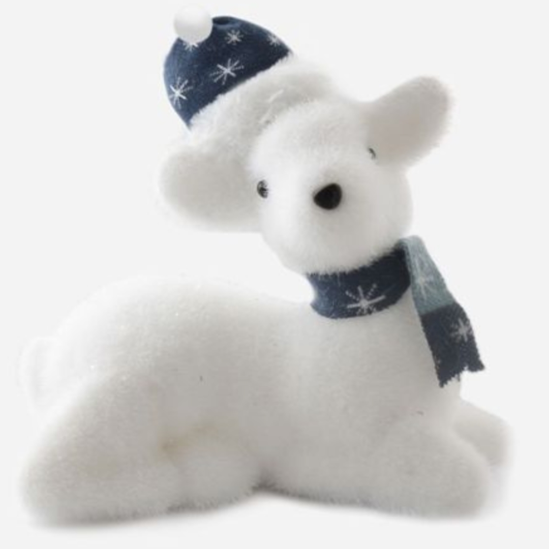Το λευκό διακοσμητικό ελαφάκι με κασκόλ και σκούφο είναι η πιο γλυκιά πινελιά για τη χριστουγεννιάτικη διακόσμησή σας.