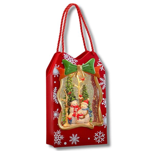 Χριστουγεννιάτικο Διακοσμητικό Φωτιζόμενη Τσάντα Δώρου με Χιονάνθρωπο και Κινούμενο Χιόνι 25 x 15 x 7cm