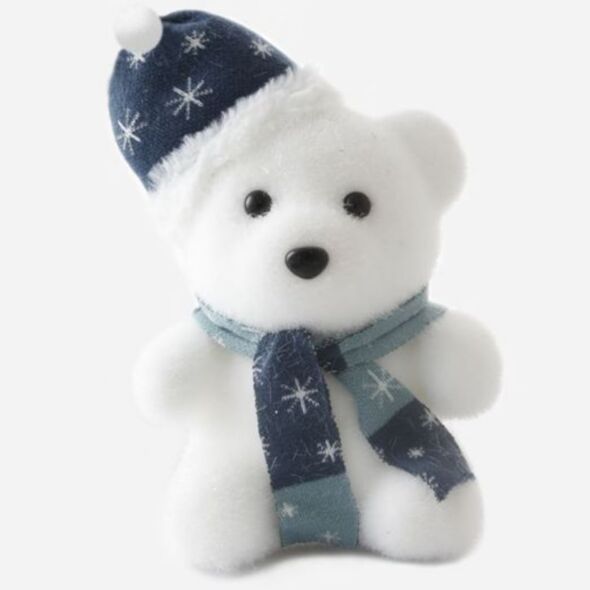 Το λευκό διακοσμητικό αρκουδάκι με κασκόλ και σκούφο είναι η πιο γλυκιά πινελιά για τη χριστουγεννιάτικη διακόσμησή σας.