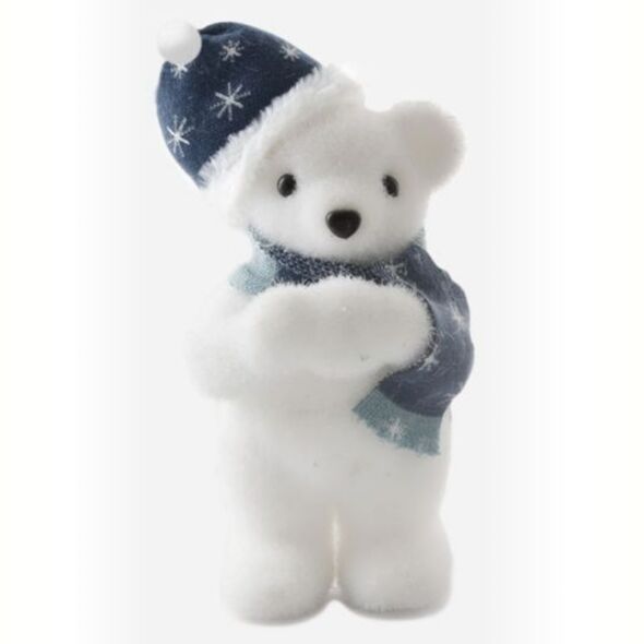 Το λευκό διακοσμητικό αρκουδάκι με κασκόλ και σκούφο είναι η πιο γλυκιά πινελιά για τη χριστουγεννιάτικη διακόσμησή σας.
