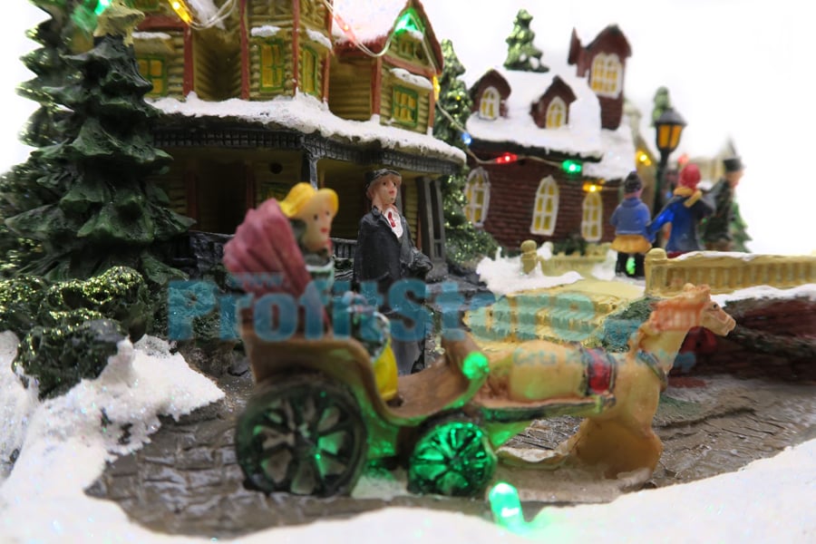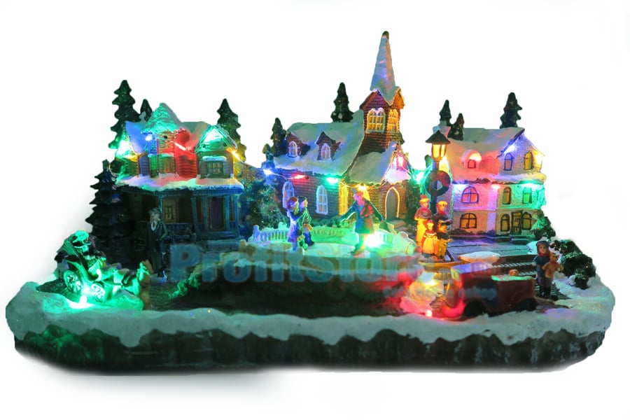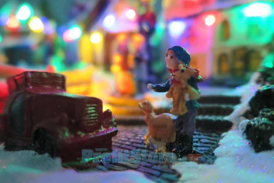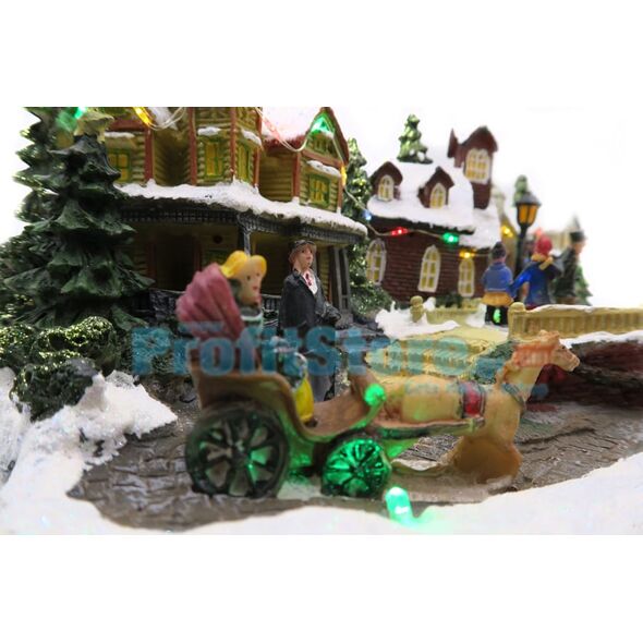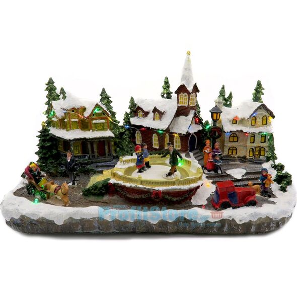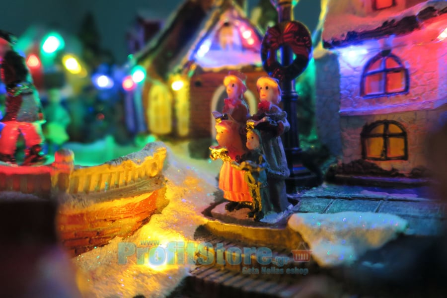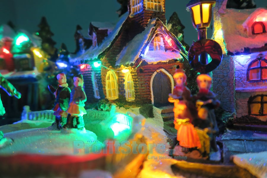 Χριστουγεννιάτικο Διακοσμητικό Χωριό με LED Πολύχρωμα Λαμπάκια, Χριστουγεννιάτικη Μουσική & Περιστρεφόμενη Πλατεία