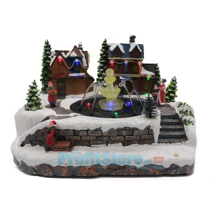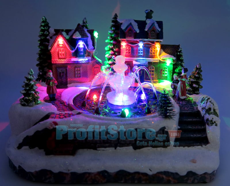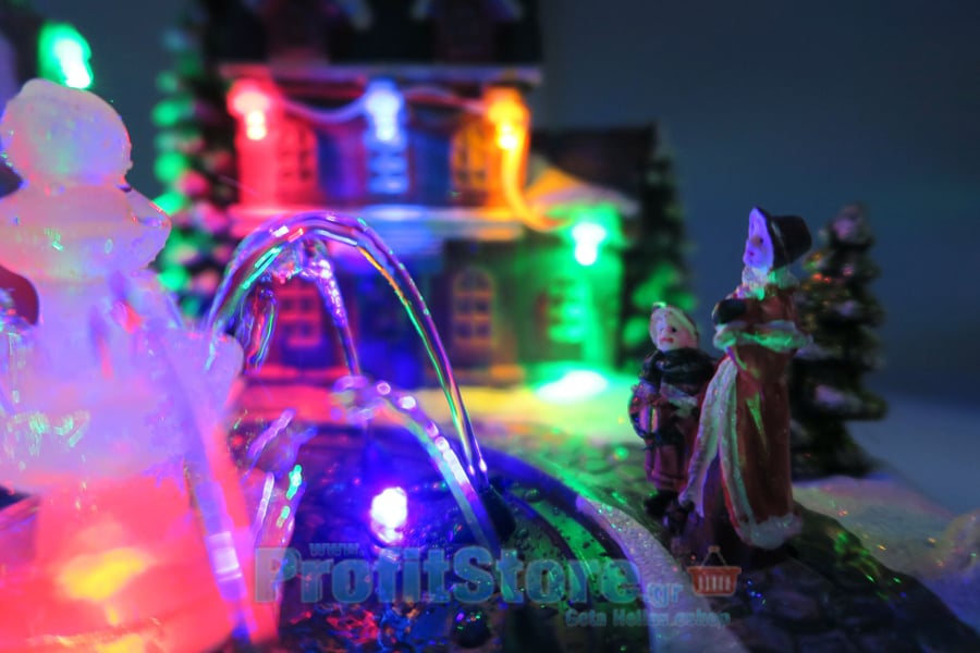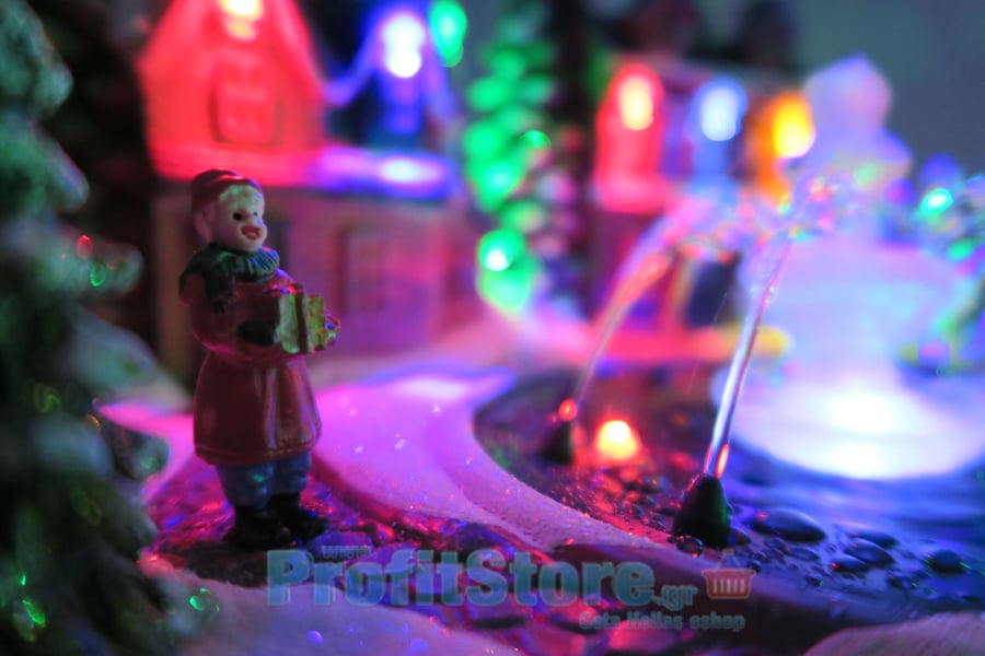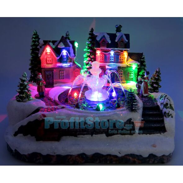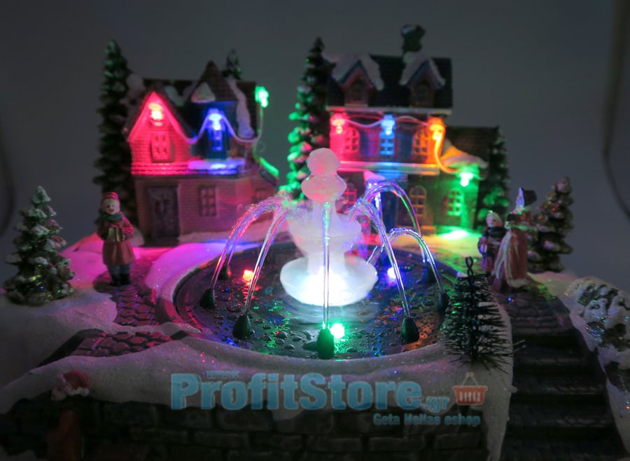Χριστουγεννιάτικο Διακοσμητικό Χωριό με Συντριβάνι Πολύχρωμο LED Φωτισμό & Χριστουγεννιάτικη Μουσική