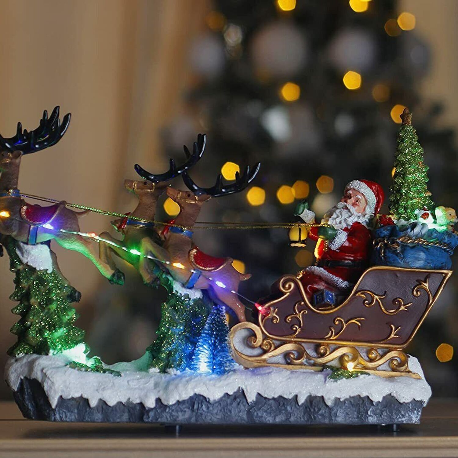 Χριστουγεννιάτικο Έλκηθρο με Άγιο Βασίλη LED και Μουσική – Διακοσμητική Σκηνή με Ελάφια και Δέντρο