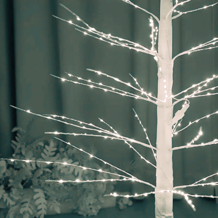 Ο κομψός του σχεδιασμός με λεπτά, λευκά κλαδιά και 480 λαμπάκια LED δημιουργεί μια ζεστή και γιορτινή ατμόσφαιρα, χωρίς να χρειάζεται βαριά στολίδια.