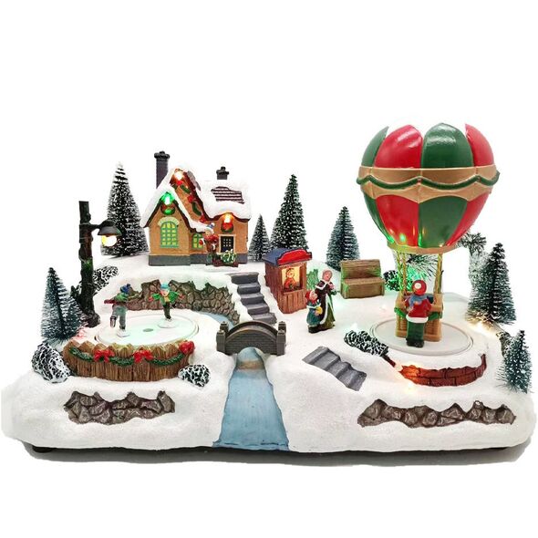 Χριστουγεννιάτικο Φωτιζόμενο Διακοσμητικό Χωριό Μπαταρίας με Μουσική & Κίνηση 35x22x19cm