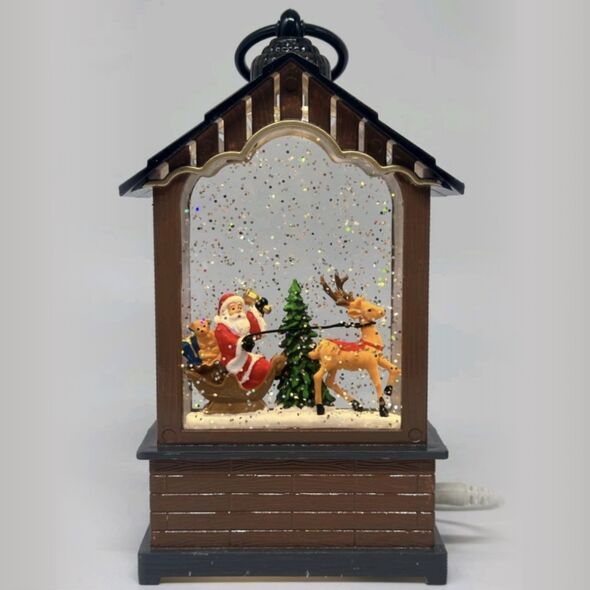 Ζωντανέψτε τη μαγεία των Χριστουγέννων με αυτό το φωτιζόμενο φανάρι-σπιτάκι, που φιλοξενεί μια υπέροχη σκηνή με τον Άγιο Βασίλη στο έλκηθρο και τον τάρανδό του.
