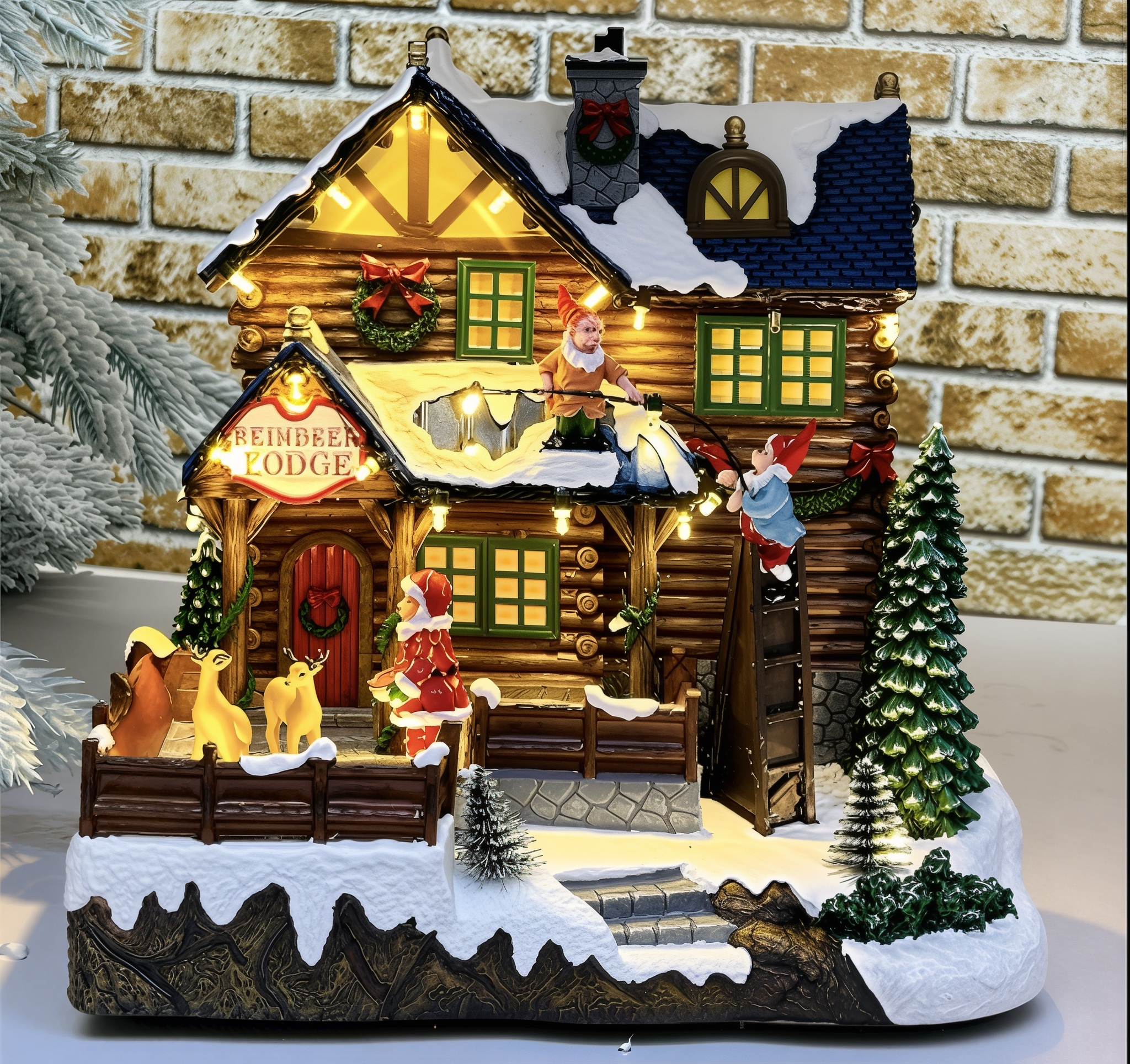 Ζωντανέψτε τη μαγεία των Χριστουγέννων με αυτό το φωτιζόμενο σπιτάκι “Reindeer Lodge”, ένα υπέροχο διακοσμητικό που συνδυάζει φως, μουσική και κίνηση σε μια γιορτινή σκηνή γεμάτη ζεστασιά και χαρά.