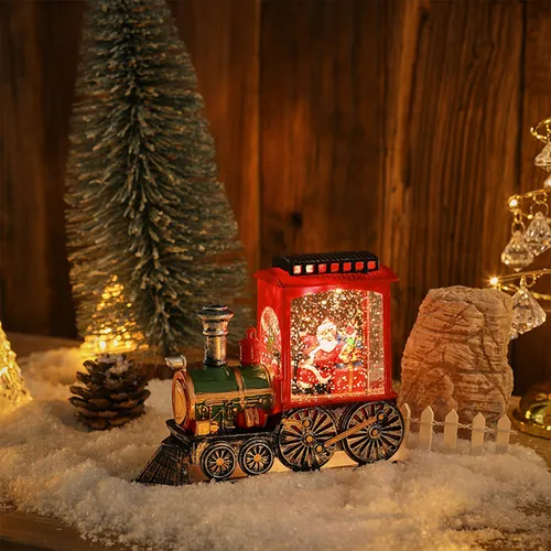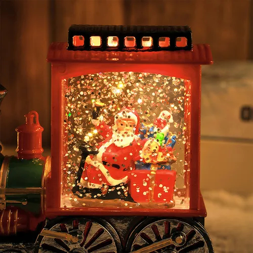 Χριστουγεννιάτικο Φωτιζόμενο Τρενάκι με Άγιο Βασίλη και Δώρα – Glitter Εφέ και LED Φωτισμός