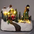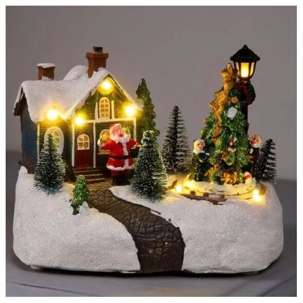 Ο Άγιος Βασίλης στέκεται μπροστά στο σπιτάκι, ενώ το φωτισμένο δέντρο περιστρέφεται δημιουργώντας μια παραμυθένια σκηνή, ιδανική για να συμπληρώσει τη χριστουγεννιάτικη διακόσμησή σας.