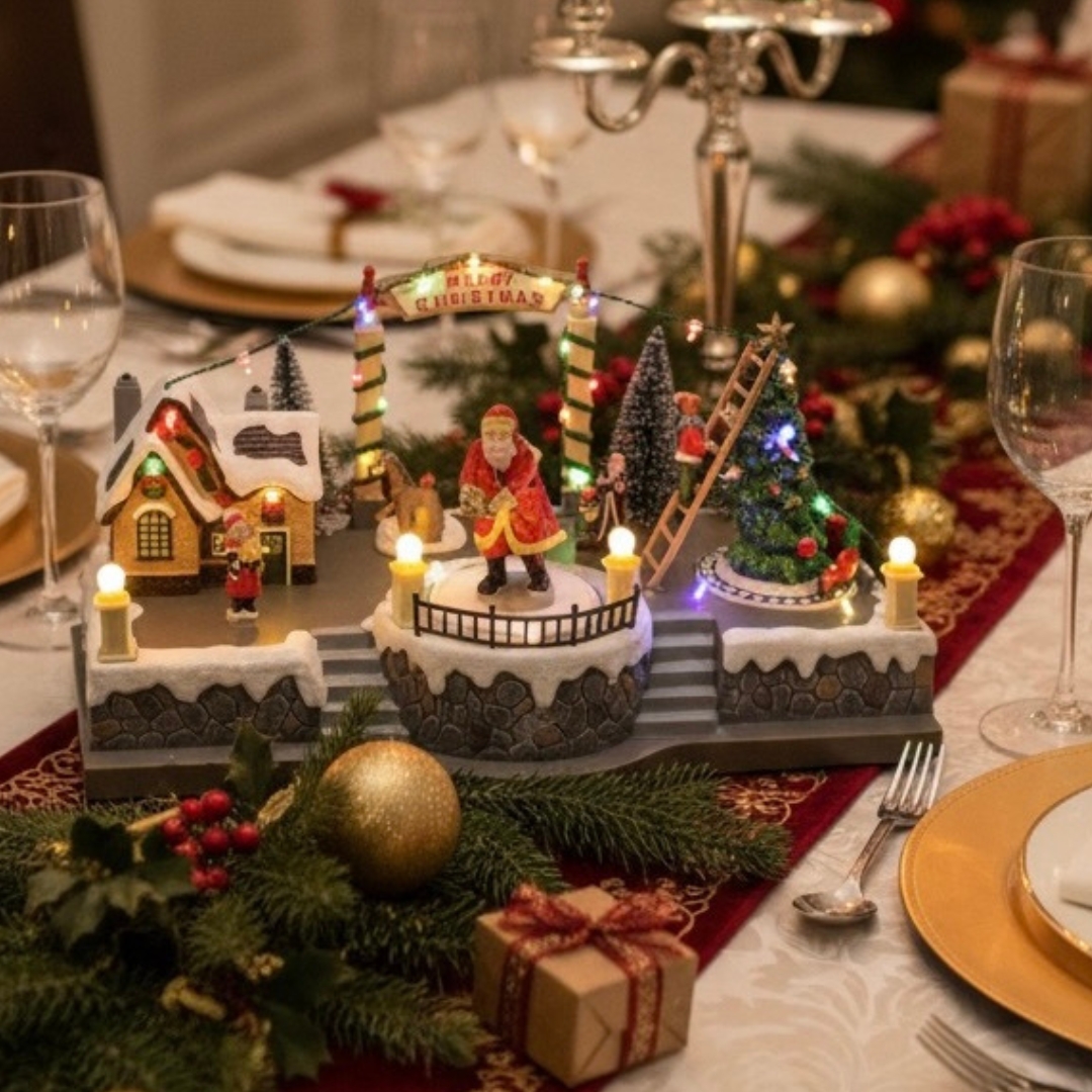 Ζωντανέψτε το πνεύμα των Χριστουγέννων με αυτό το εντυπωσιακό φωτιζόμενο χωριό που συνδυάζει κίνηση, φως και λεπτομέρεια.