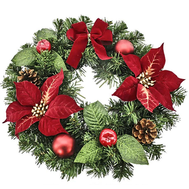 Χριστουγεννιάτικο Γιορτινό Διακοσμητικό Στεφάνι με Κουκουνάρια και Αλεξανδρινά 40cm