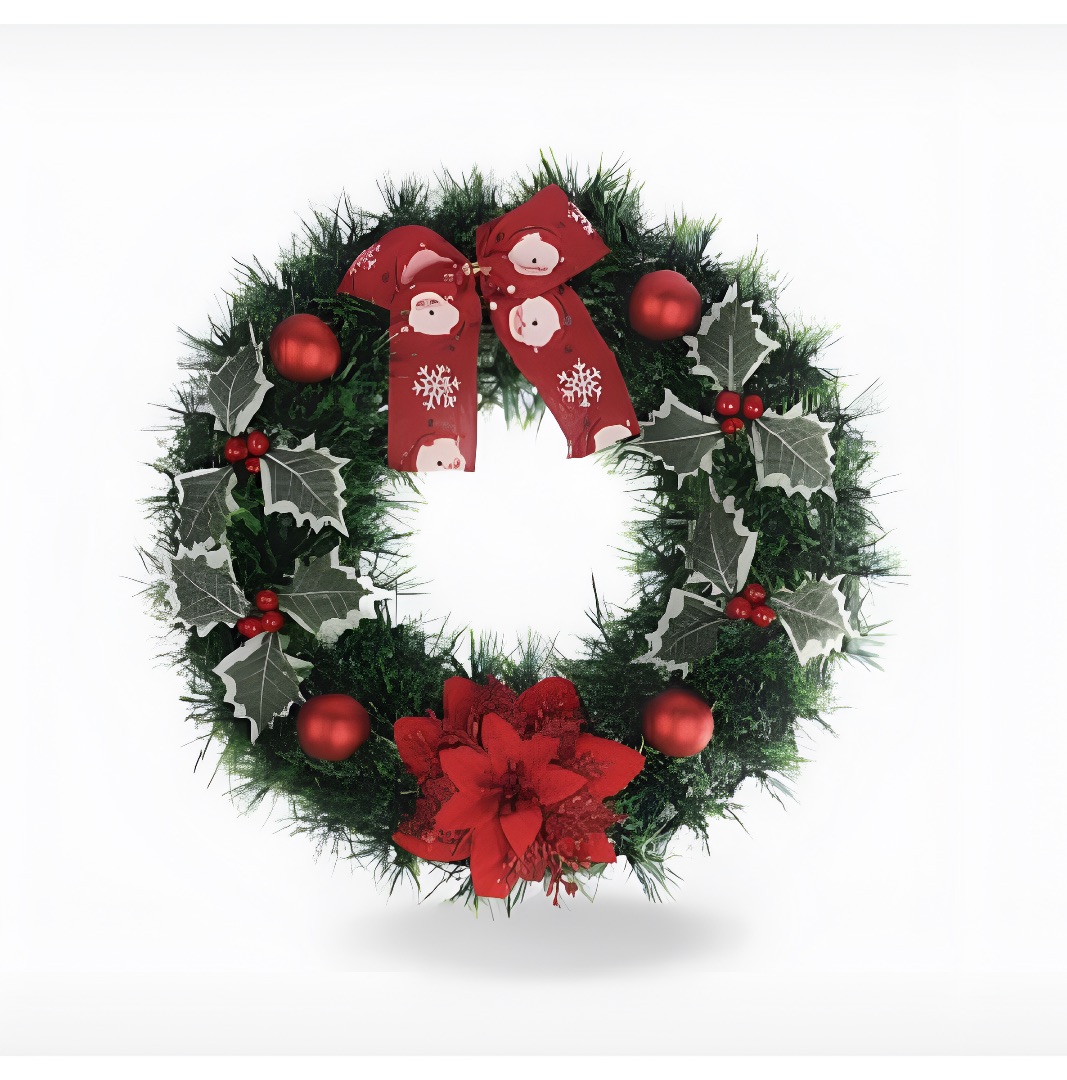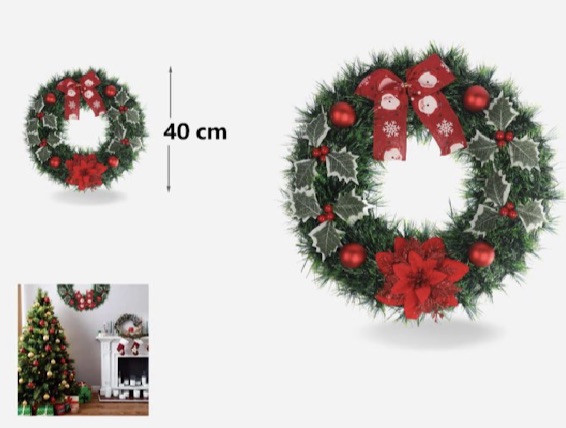 Το Χριστουγεννιάτικο στεφάνι με κόκκινα στολίδια και γκι και διάμετρο 40cm αποτελεί ένα εντυπωσιακό διακοσμητικό για πόρτα, τοίχο ή τζάκι.