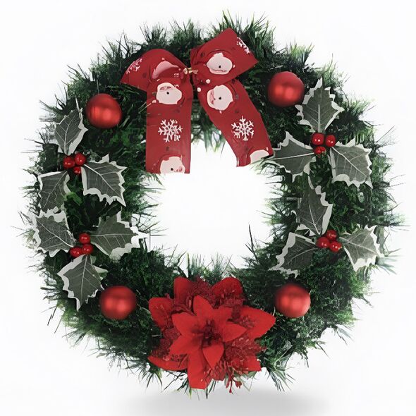 Το Χριστουγεννιάτικο στεφάνι με κόκκινα στολίδια και γκι και διάμετρο 40cm αποτελεί ένα εντυπωσιακό διακοσμητικό για πόρτα, τοίχο ή τζάκι.
