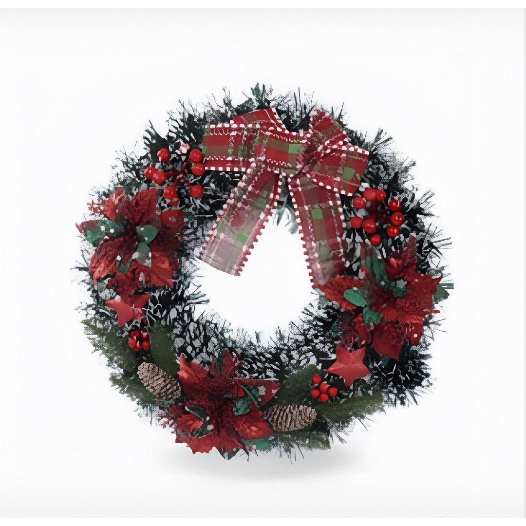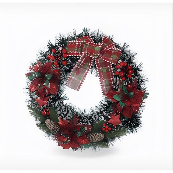 Το Χριστουγεννιάτικο στεφάνι με κόκκινα στολίδια, καρό φιόγκο και διάμετρο 40cm αποτελεί ένα εντυπωσιακό διακοσμητικό για πόρτα, τοίχο ή τζάκι.