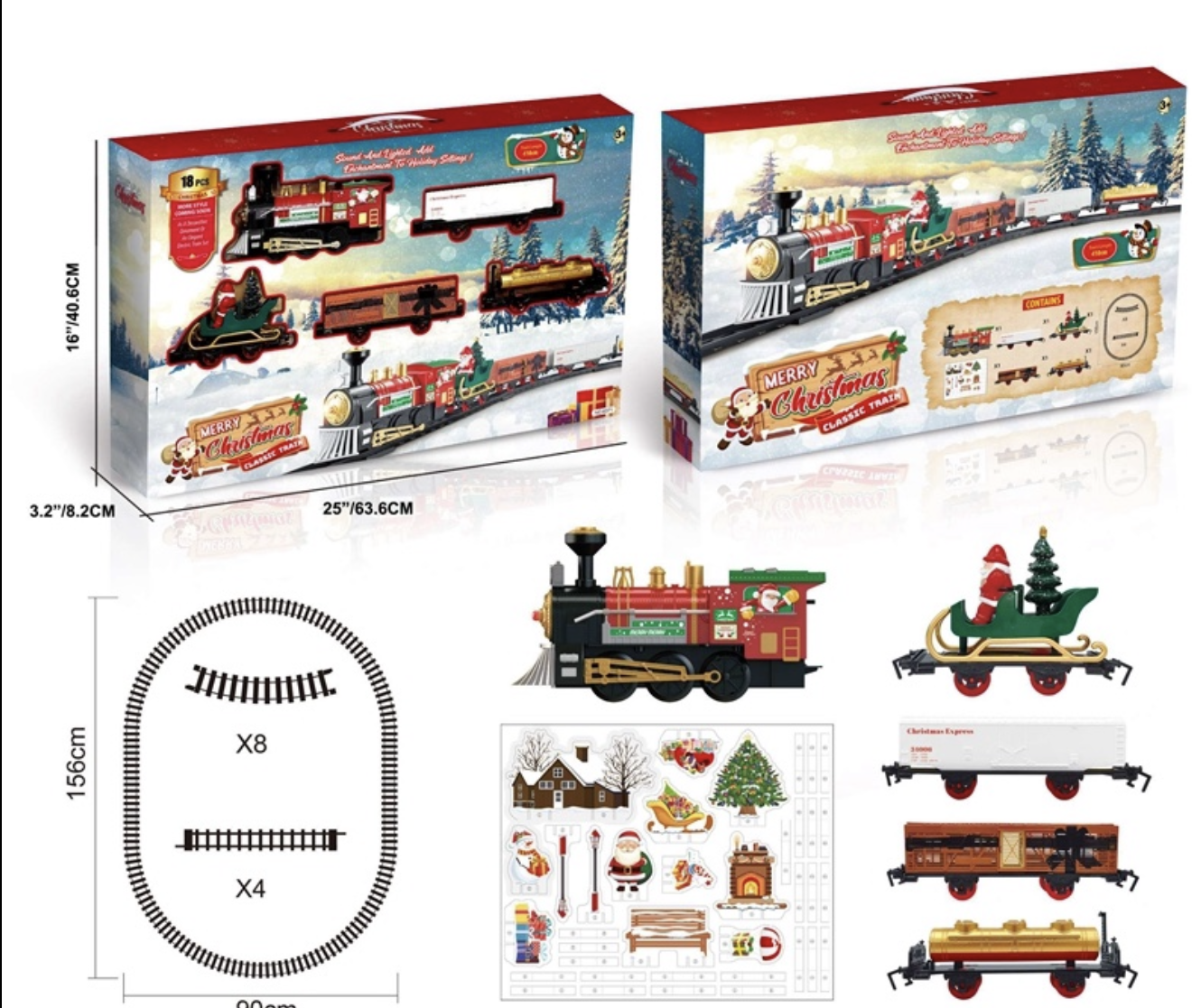 Χριστουγεννιάτικο Τρενάκι με Κίνηση και Μουσική – Σετ 18 Τεμαχίων με Ήχο και Διαδρομή 156×90 εκ.