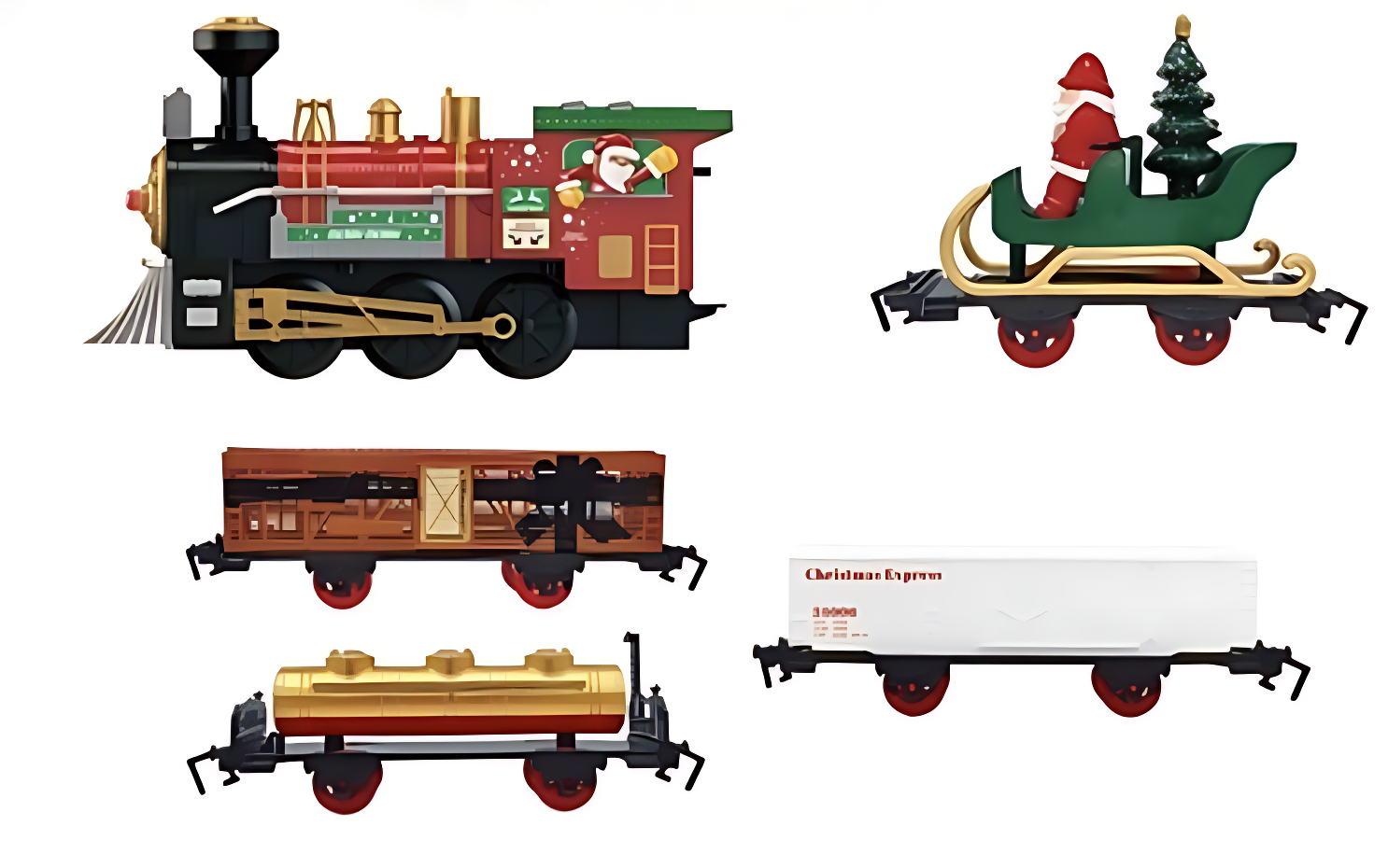 Περιλαμβάνει μηχανή με ήχο, βαγόνια, έλκηθρο του Άγιου Βασίλη και πλήθος διακοσμητικών αξεσουάρ, δημιουργώντας μια ολοκληρωμένη χριστουγεννιάτικη σκηνή.