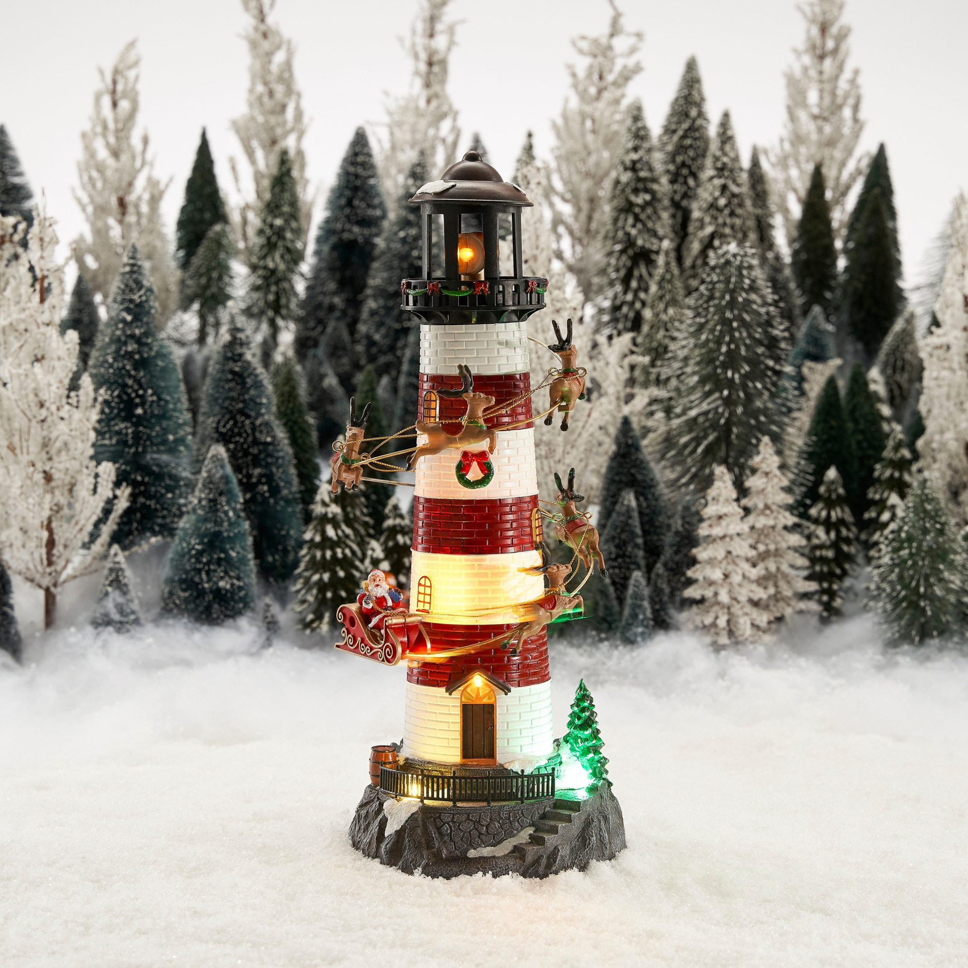 Χριστουγεννιάτικος Φάρος με Κινούμενους Ταράνδους, LED Φωτισμό & Μουσική
