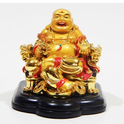 Ο συγκεκριμένος Βούδας  είναι σε καθιστή στάση, που είναι σύμβολο σοφίας και γαλήνης. Κάθεται σε ένα θρόνο με δράκους ενώ πατάει πάνω σε νομίσματα και κρατάει ένα σάκο χρημάτων και το σύμβολο του πλούτου (Ingot). Υπόσχεται ευημερία, κέρδη, αύξηση των εισοδημάτων και προστασία των οικονομικών σας.