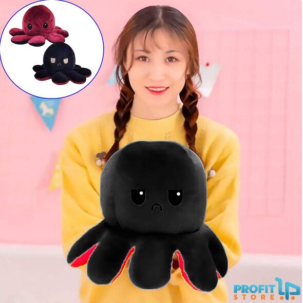 Λούτρινο χταπόδι μεγάλου μεγέθους (40x20cm) όπου αλλάζει διάθεση! Πιέζετε το κεφάλι του μέσα και το γυρνάτε ανάποδα και από την μια στιγμή στην άλλη γίνεται από θυμωμένο χαμογελαστό και αλλάζει χρώμα! Πολύ αστείο δώρο, ιδανικό για όλες τις περιστάσεις!